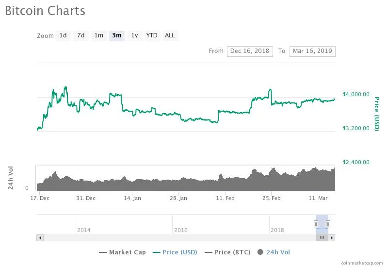 尽管如此,比特币的价格仍处于3800至4000美元区间,几个月来无法完全突破4000美元的关键阻力位。